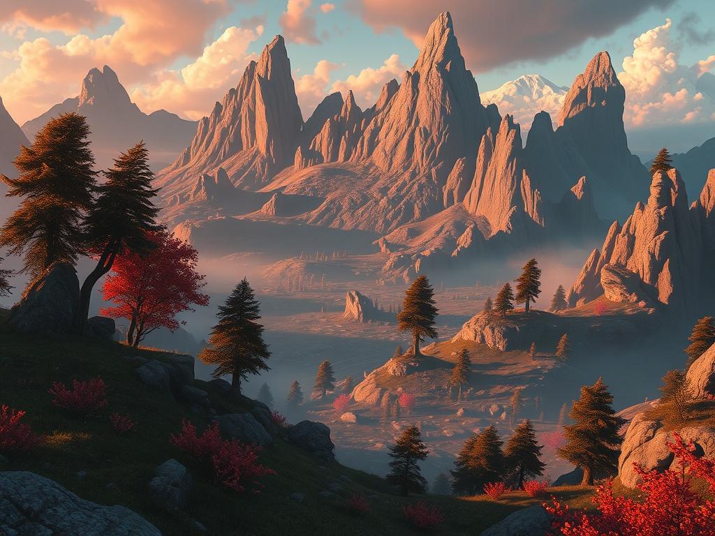 Освещение моментально меняет восприятие сцены. Тёплый свет на рассвете делает мир мягким и объёмным, контрастный боковой свет подчёркивает форму рельефа, а рассеянный мрак фиксирует атмосферу тайны. Важна не только техника — направление, интенсивность и цвет света должны соответствовать настроению и истории локации.